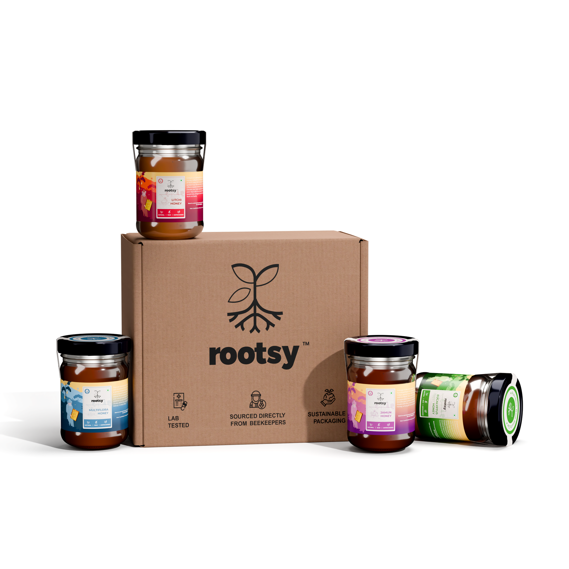 Rootsy Raw Honey Taster Set (4 x 125g)