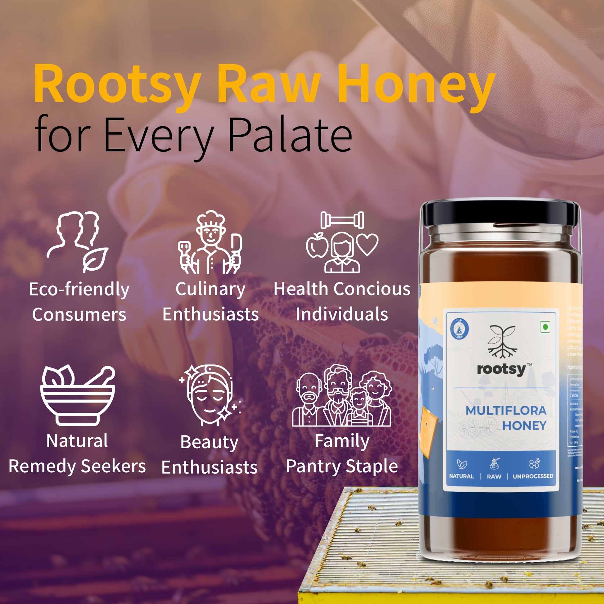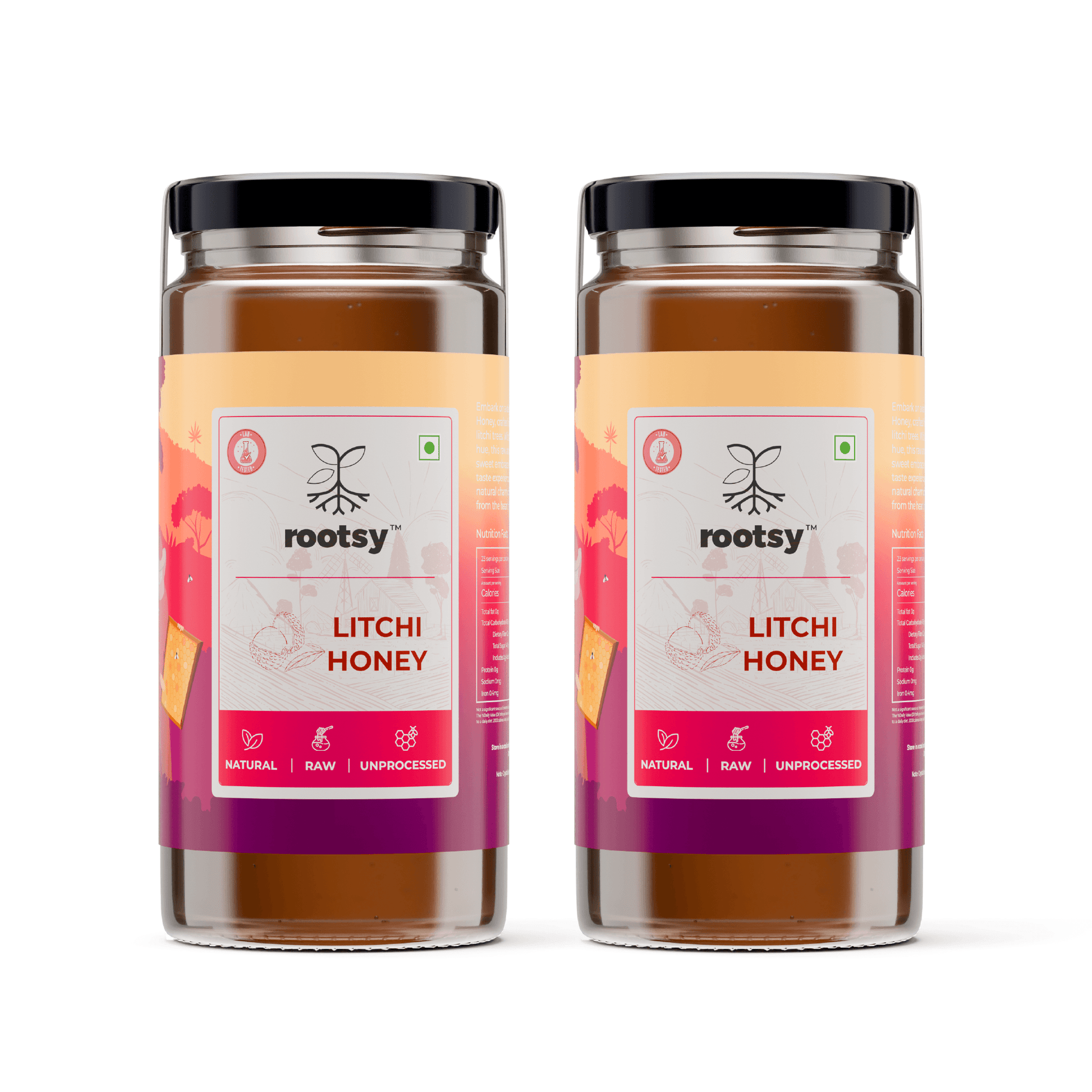 Experience the delicate, floral sweetness of Rootsy Raw Litchi Honey with this pack of two 500g jars. Unprocessed and pure, this honey is carefully harvested to retain its natural health benefits, making it a perfect addition to your daily routine.