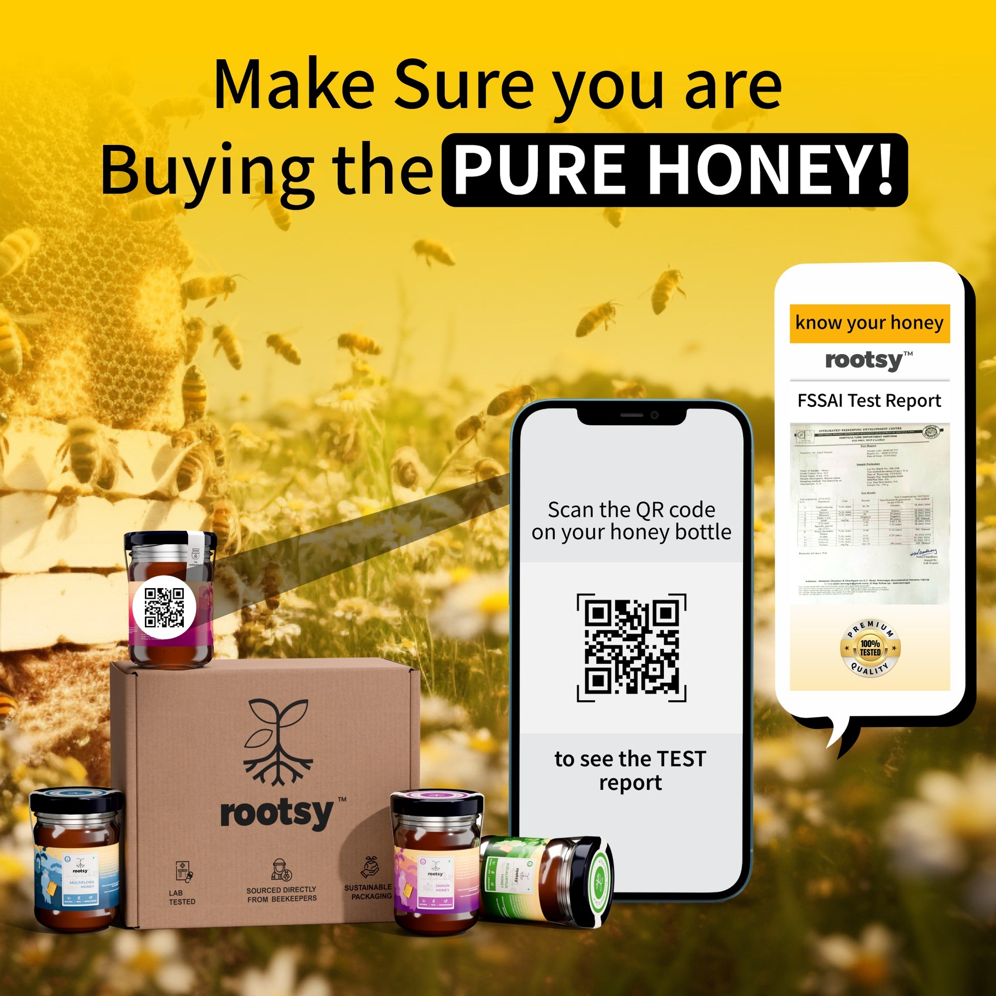 Experience the rich and varied flavors of nature with the Rootsy Raw Honey Sampler Pack. This collection features four distinct types of pure, raw honey—Multiflora, Jamun, Litchi, and Eucalyptus—each carefully harvested and unprocessed to preserve their natural health benefits. Perfect for those who enjoy exploring different honey varieties.